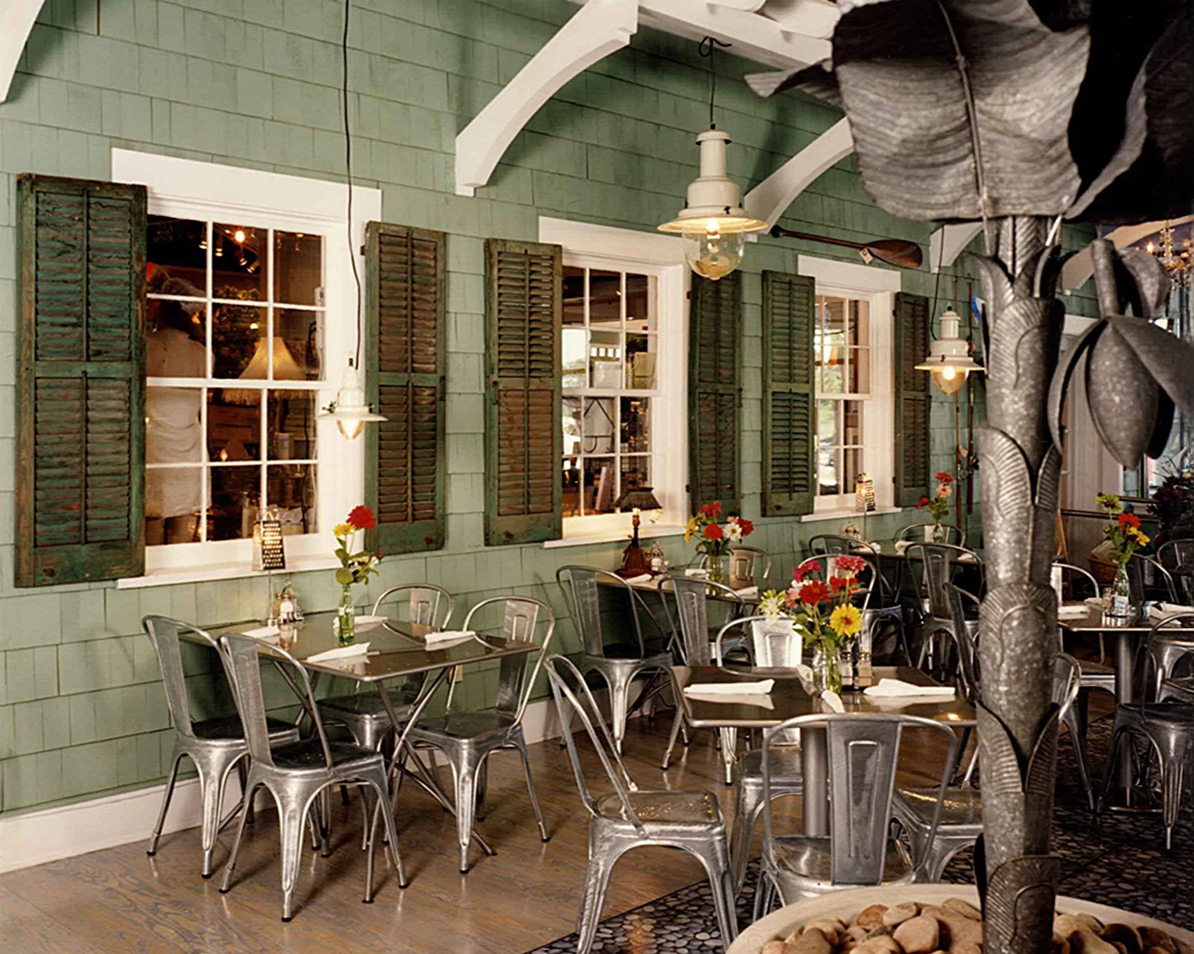 NoFo Market & Café was a unique destination for both local residents and beachgoers in Wilmington, North Carolina, formerly located at The Forum Shopping Center on Military Cutoff Road. The café, market, and restaurant featured an eclectic atmosphere inspired by the coastal surroundings. One half of the café was thoughtfully designed to evoke the pastel-colored homes that line the Intracoastal Waterway and nearby Wrightsville Beach. In the ceiling, whimsical galvanized-metal clouds floated, creating a sense of openness and offering strategic spots for lighting.