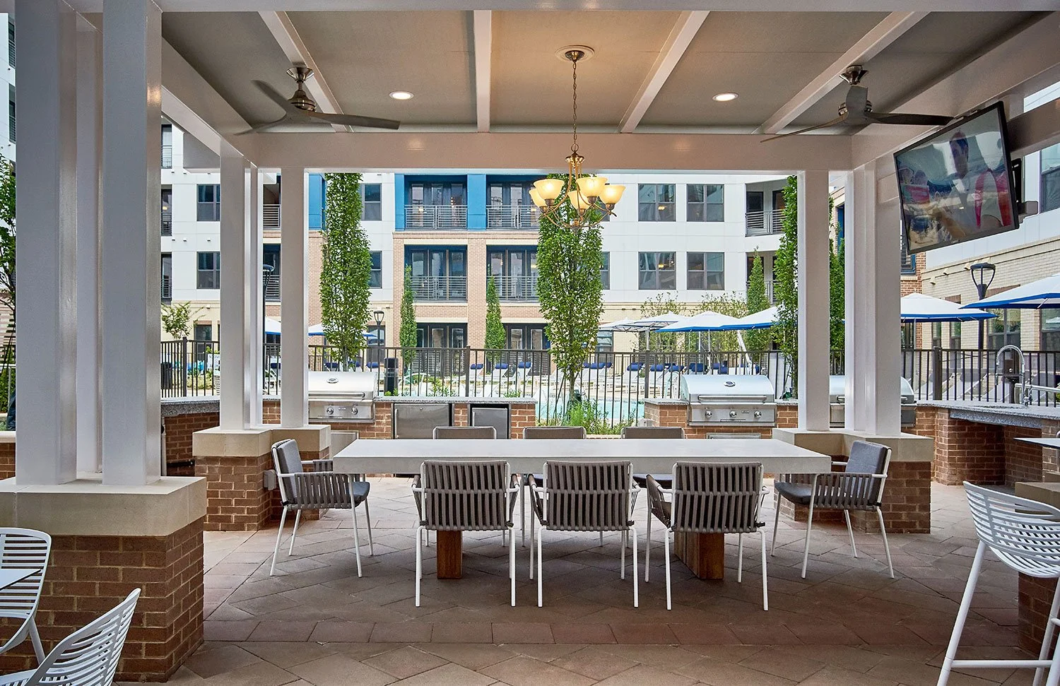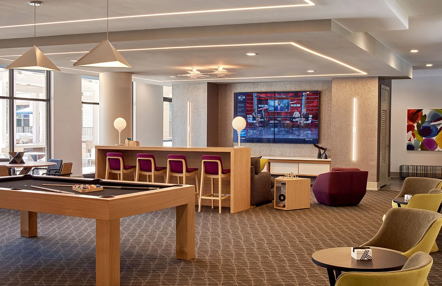 Residents enjoy a wide range of active amenities designed for an energetic lifestyle. These include a bike shop and dedicated bike storage areas, both of which support cycling enthusiasts. The community features a spacious 10,000 sf clubroom and a fully equipped fitness center for health and wellness needs. Outdoor amenities include a resort-style pool with cabanas, set within a 14,000 sf courtyard, creating a vibrant setting for.